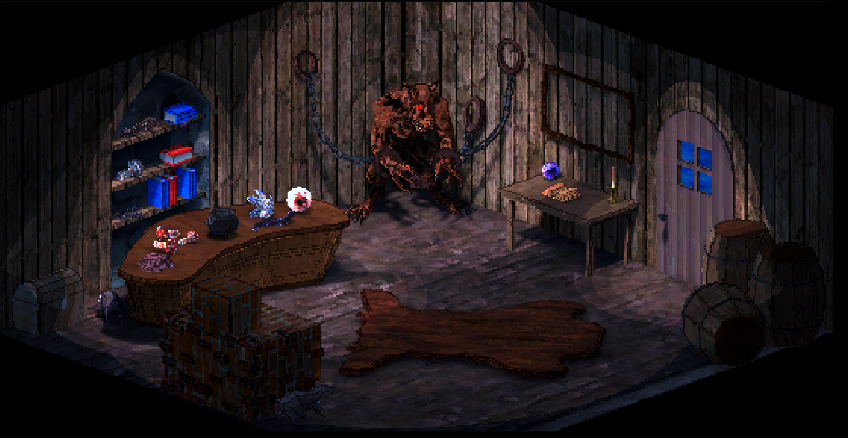 Why do all the dirty work if you're a mad scientist with a monster thrall? Find ingredients, discover their properties; send your potion-enhanced experiment out to the field and observe their effects carefully in battle; realize that there's a reason it's not you who is drinking them -- your monster friend might experience side effects that will have you reconsidering your strategy in a turn based battle system that's ideal for quick casual sessions, each of which with the possibility of an unexpected result.