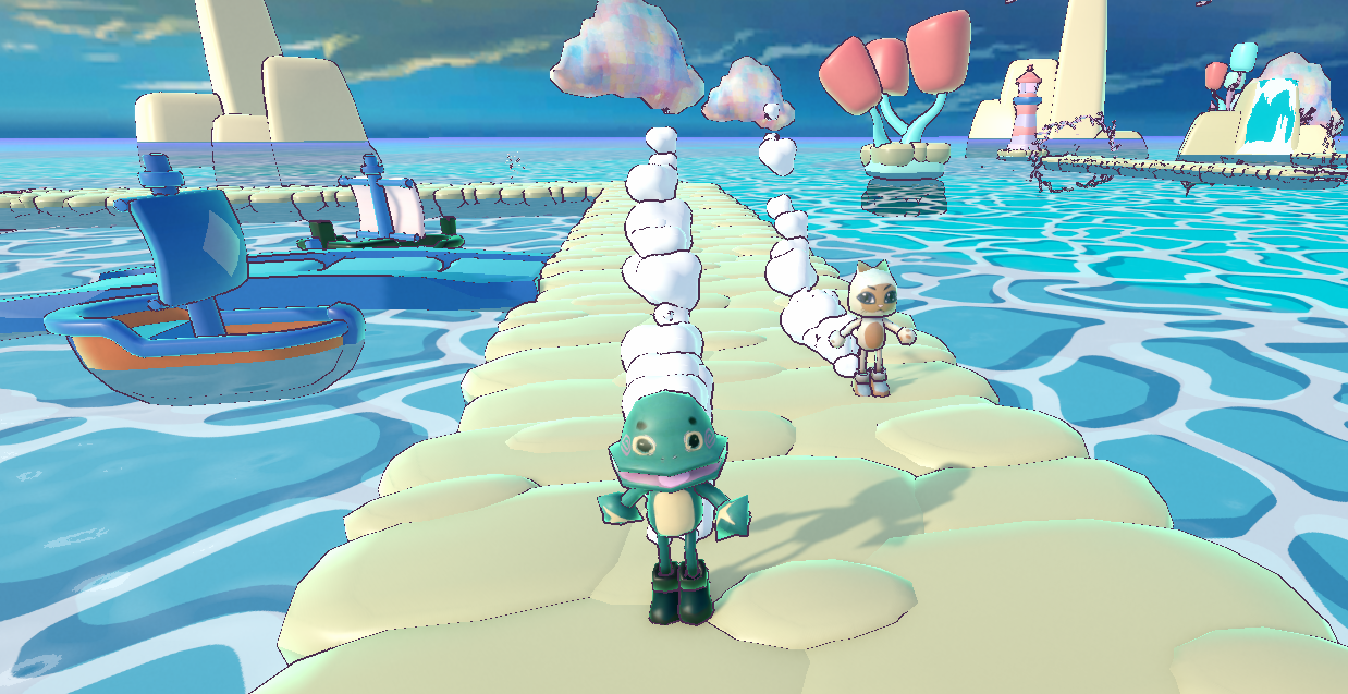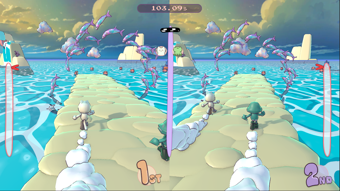 HyperDream is an aquathlon racing game, set in the dream of a humanoid cat in which two players – controlling either the cat or a humanoid frog character – race across a dreamlike obstacle course consisting of running and swimming sections.