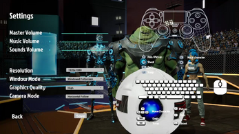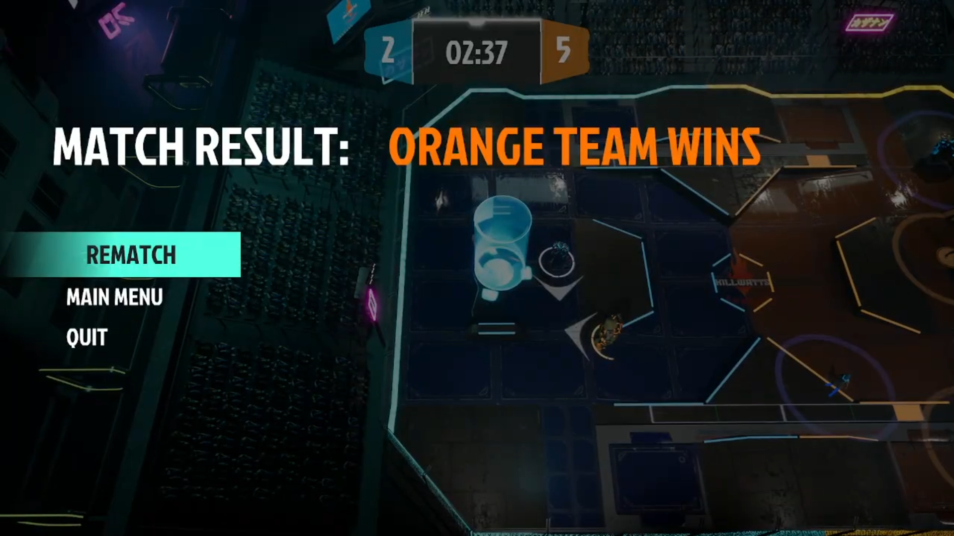 Each round begins with the ball at center arena. Teams compete to possess, carry, and deliver the ball to the opposing goal. The twist? The ball builds charge while held, but overcharges if kept too long, punishing greedy players with an explosive penalty. Score by delivering a sufficiently charged ball into the enemy goal zone. First team to reach the target score wins. Each team has 3 characters they can switch between, pass or throw the ball to. Everyone can also knock the ball off the opponent's hands by dashing into them. Uncontrolled characters defend the area around them using their "Defensive Aura".